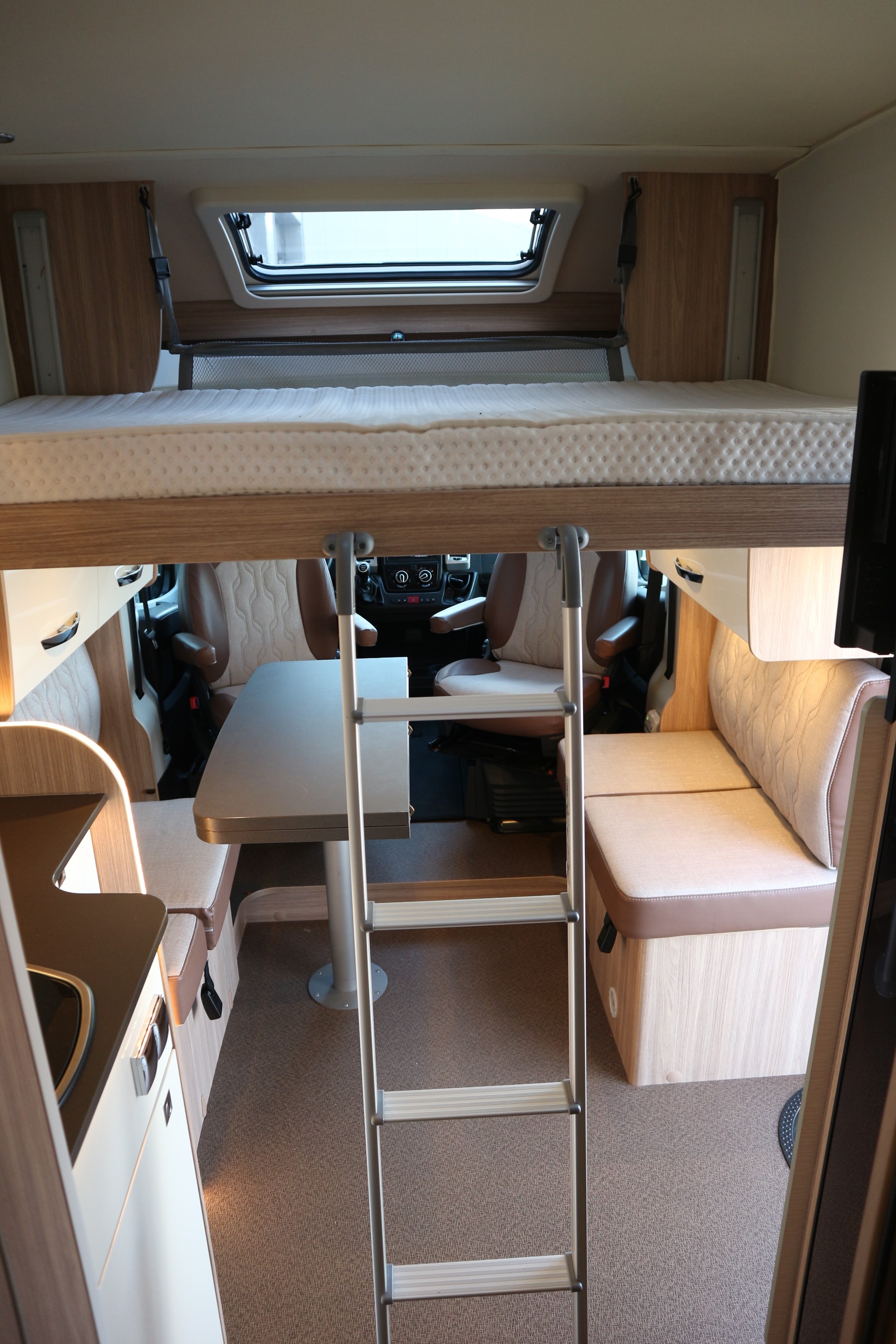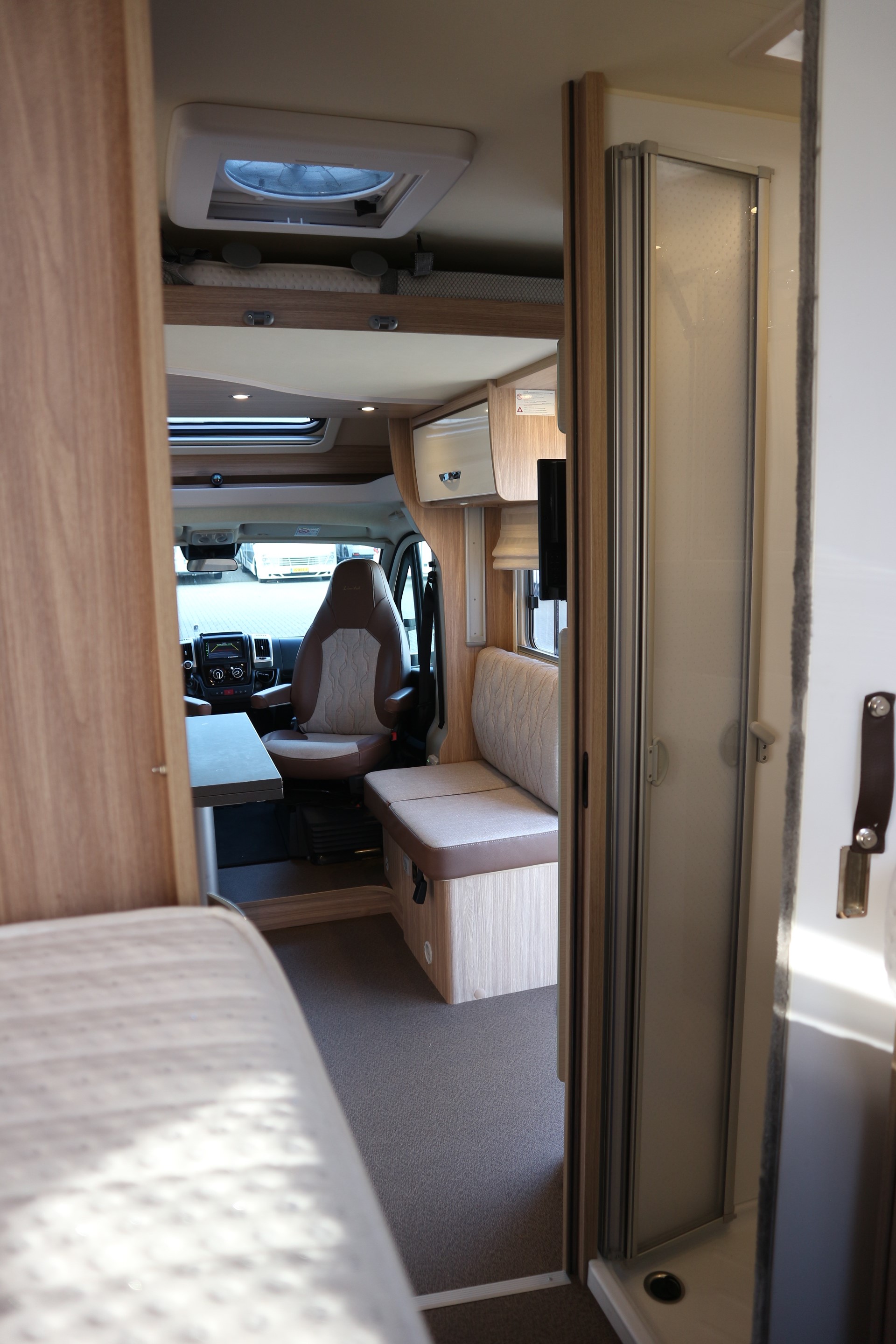 Boven de zitgroep bevindt zich een ruimtebesparend hefbed, waar 2 personen kunnen slapen. De aparte bedden waarmee de camper is uitgerust bieden een ruime slaapplek aan 2 personen. In de de badkamer vindt u niet alleen een wastafel maar ook een ingebouwd cassettetoilet. Er is bovendien een doucheruimte in de camper, zodat u van uw eigen douche gebruik kunt maken.