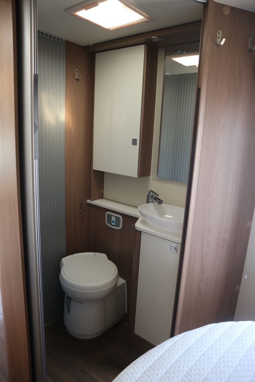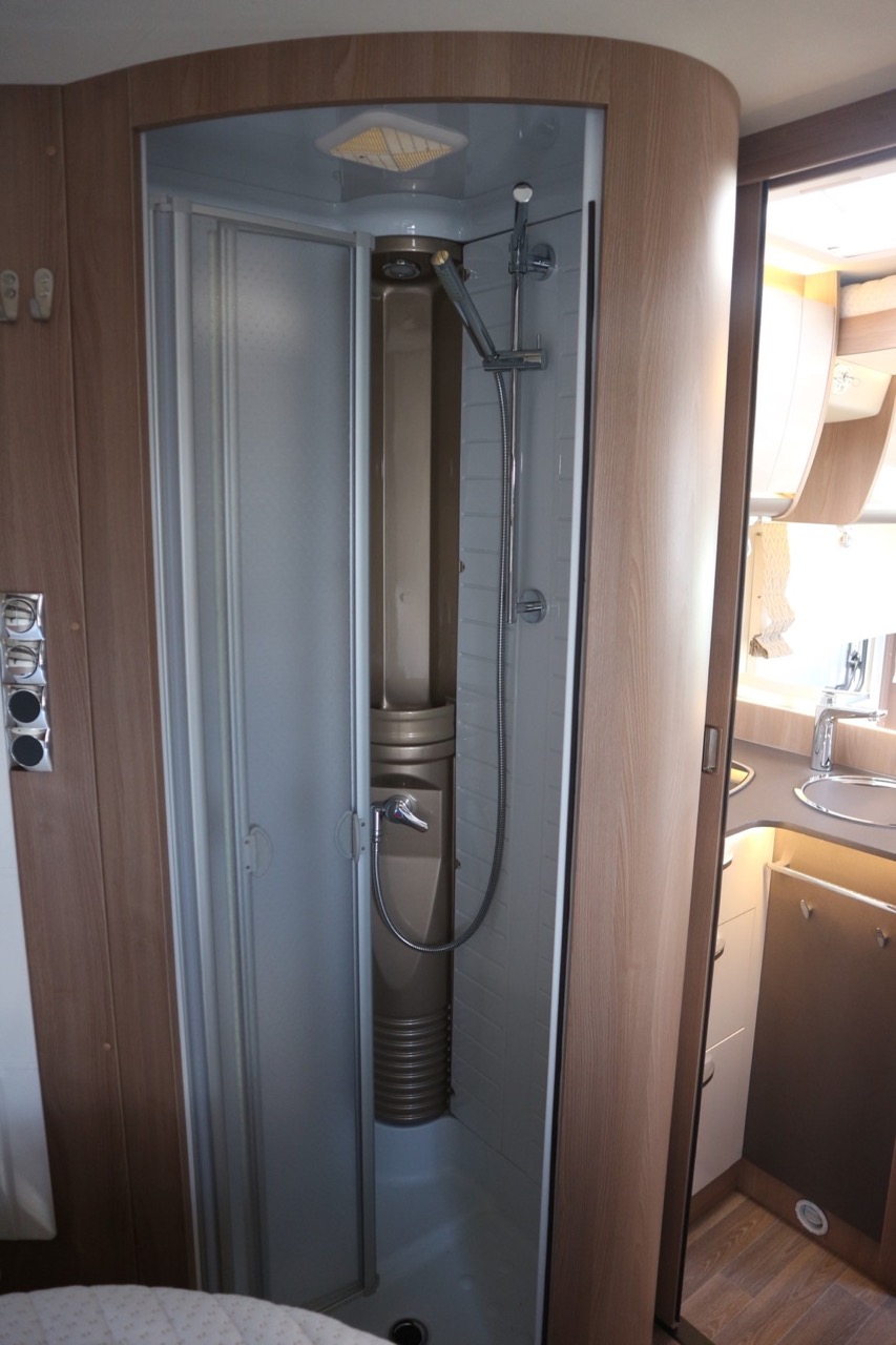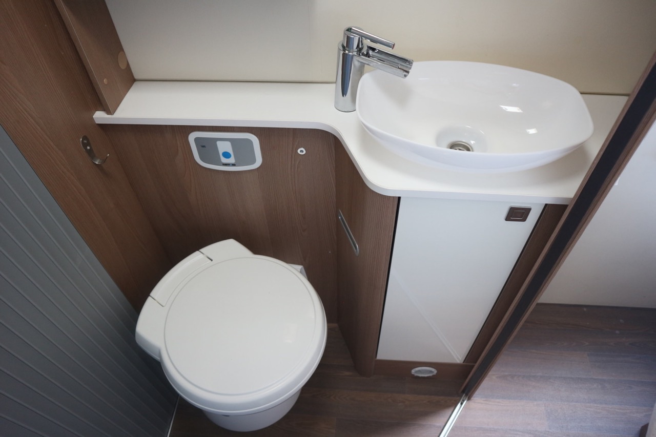 U zult de gemakkelijk instap van dit vrijstaande queensbed zeker waarderen. U bespaart enorm veel ruimte dankzij het hefbed, waarin 2 personen een slaapplaats vinden. U kunt zich heerlijk opfrissen bij de wastafel in de badkamer. Daar is ook een cassettetoilet ingebouwd. Wilt u zich onderweg opfrissen? Dat kan gezien de camper voorzien is van een douchecabine.